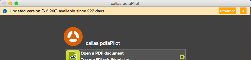 As soon as a new minor version is available for download, a notification bar in the main window of the Standalone version is shown. This functionality is not available in the Acrobat Pro PlugIn.