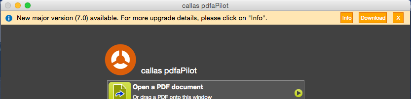 As soon as a new major version is available for download, a notification bar in the main window of the Standalone version is shown. This functionality is not available in the Acrobat Pro PlugIn.